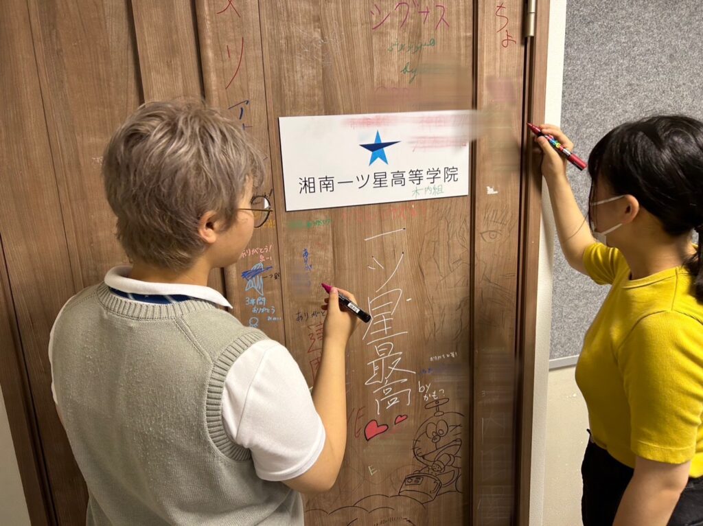 在校生だけでなく、卒業生もメッセージを書きに来てくれました。