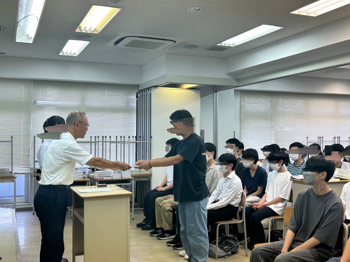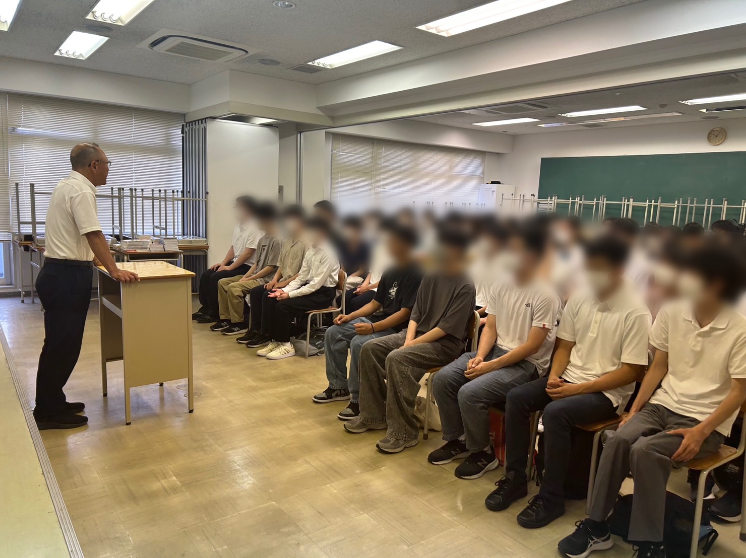 これまで全校での式典の度に、教室のパーテーションを開き、生徒数分の座席を並べるという作業を幾度となく行ってきました。